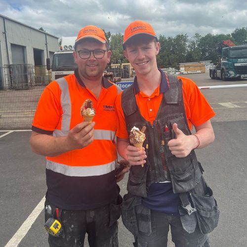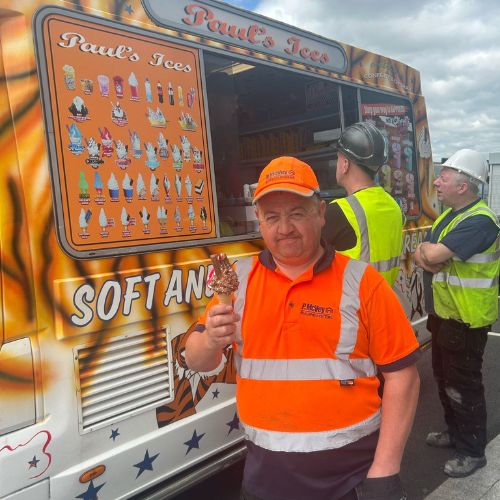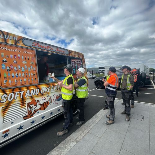 Overall, celebrating our team in small ways supports a healthier and more collaborative workplace culture. Our approach to staff wellbeing goes beyond social events. The ice cream van visit is one example of how we recognise and celebrate our employees. Simple gestures like this demonstrate that we value their contributions. By consistently supporting our workforce, P McVey Building Systems builds a motivated, engaged, and resilient team.